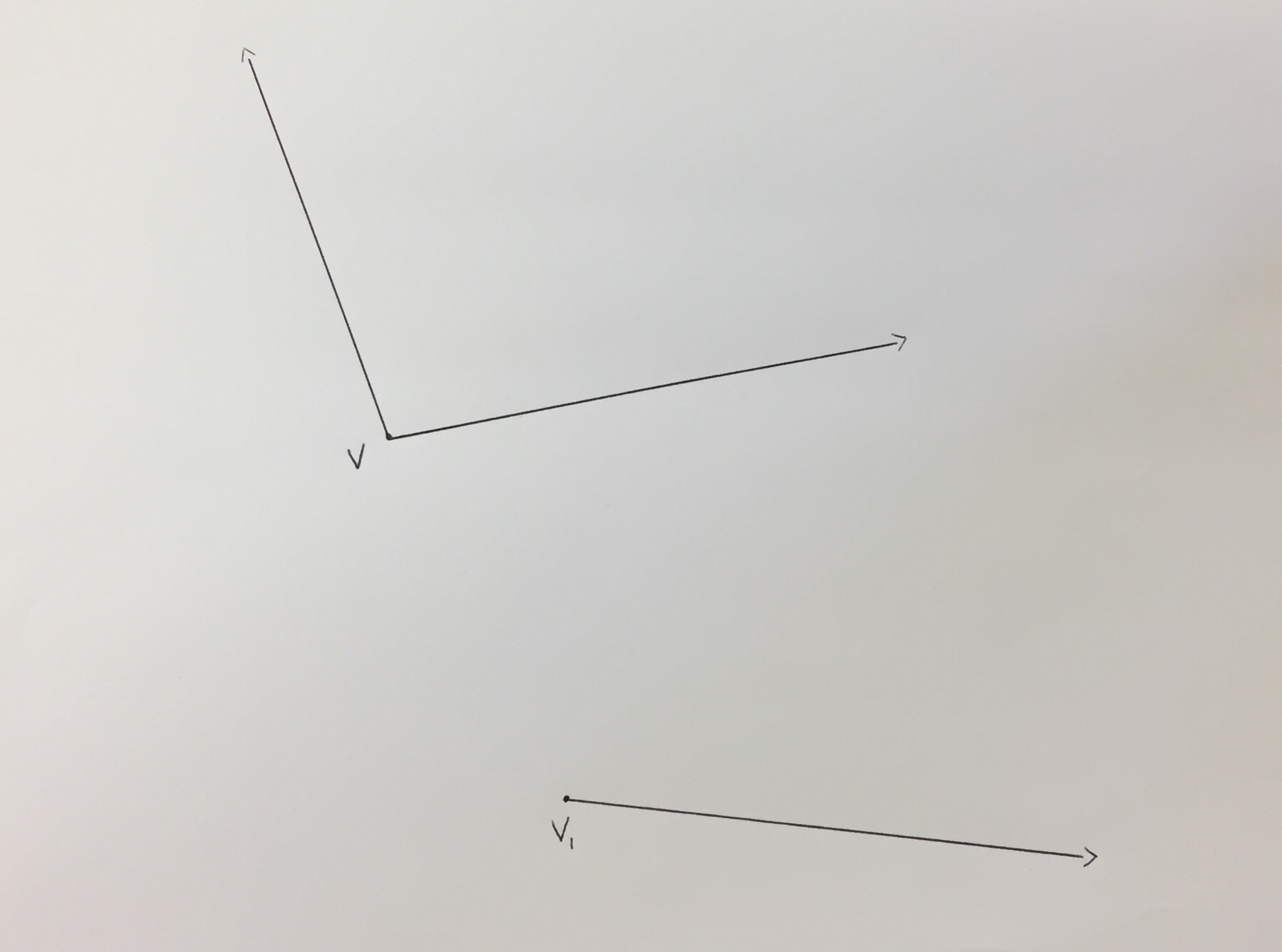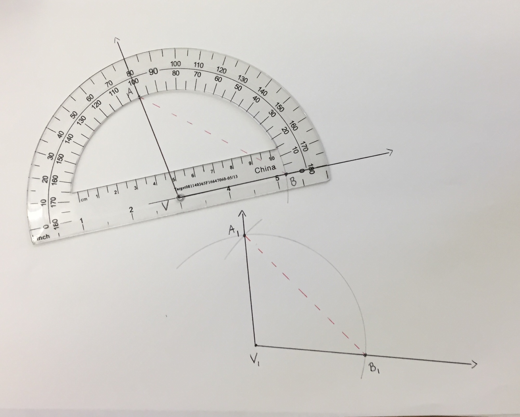 - Draw any ray. Â This will act as the baseline for your new angle. Â The vertex (V) of your original angle will correspond with the endpoint (V1) of your new ray.