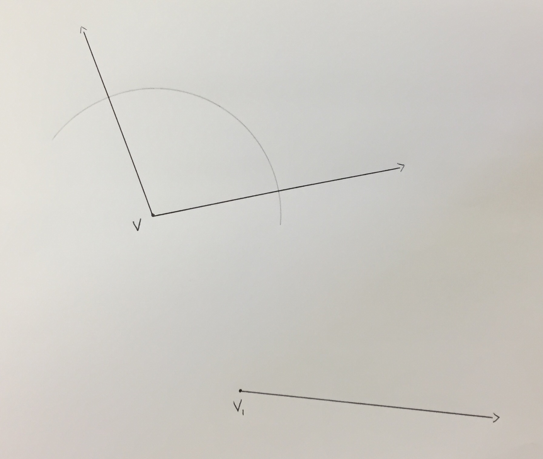- Keeping the same compass opening, draw a matching arc with V1 as its center.