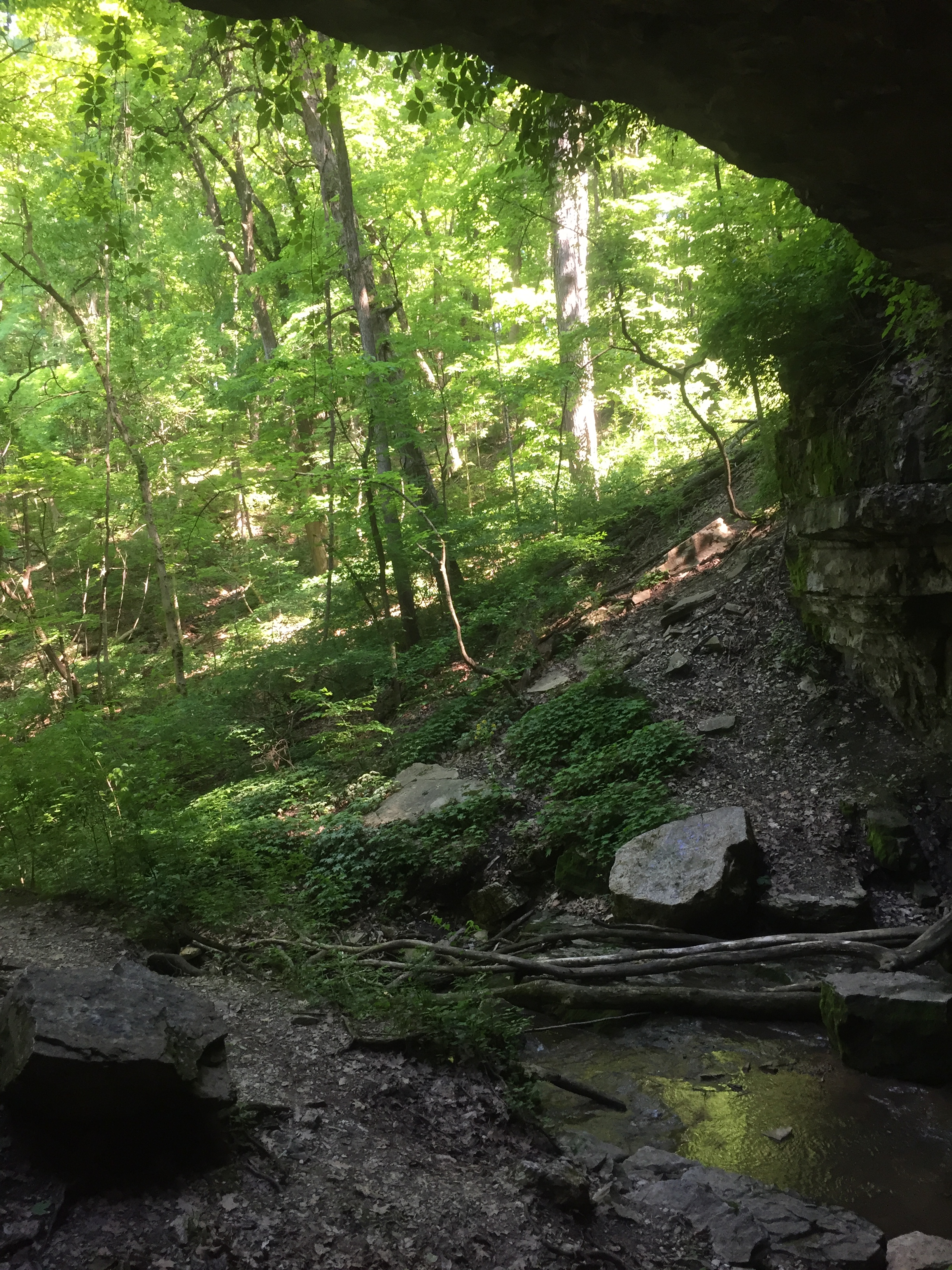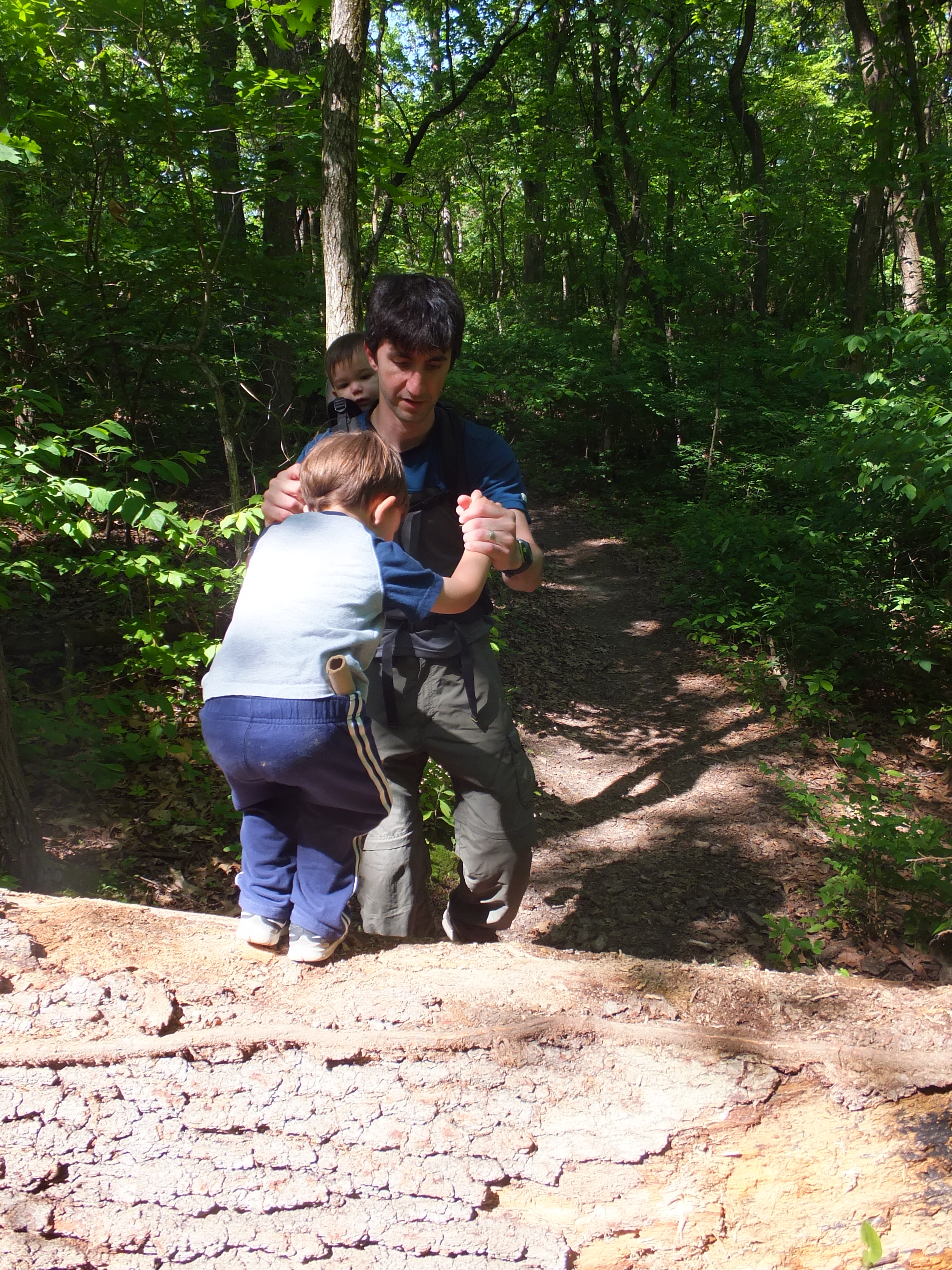 We are taking our boys to Olympic National Park for a week this summer, so we did a little trial run this weekend. Â We hiked down to a cave near our house — about a 2.5 mile loop — with little brother in the backpack and big brother on foot. Â Our three-year-old has never walked more than about a mile, so we thought this might be tough for him. Â We underestimated him. Â He found a walk through the “jungle” positively riveting and did not fuss once. Â He got a valuable education in reading trail signs and navigating obstacles (aka “popsicles”) on the trail. Â He also was thrilled to have both his camera and “bernoculers” at his disposal, stopping often to take pictures or look for animals. Â Mainly, he was interested in seeing any elephants that might happen by. Â We’ve got a budding naturalist on our hands.