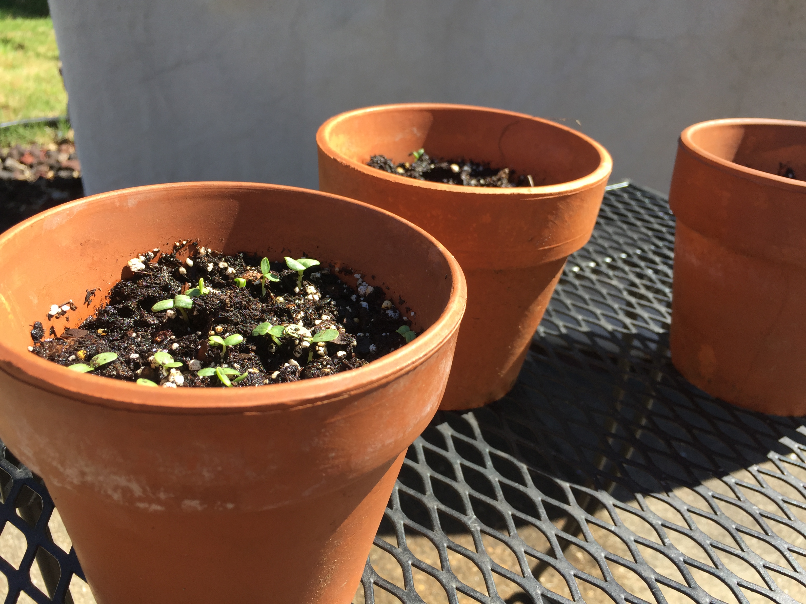 Our son is taking a genuine joy in caring for the plants and is noticing every little growing thing around our yard. He saw this tiny yellow flower — just a common weed — the other day and called me over to show it to me. We decided he was up for another project and got him some zinnias to plant in a few small pots. He loved using the trowel to fill the pots and gently placed the seeds one by one. That was Monday. They are already sprouting under his careful watch.