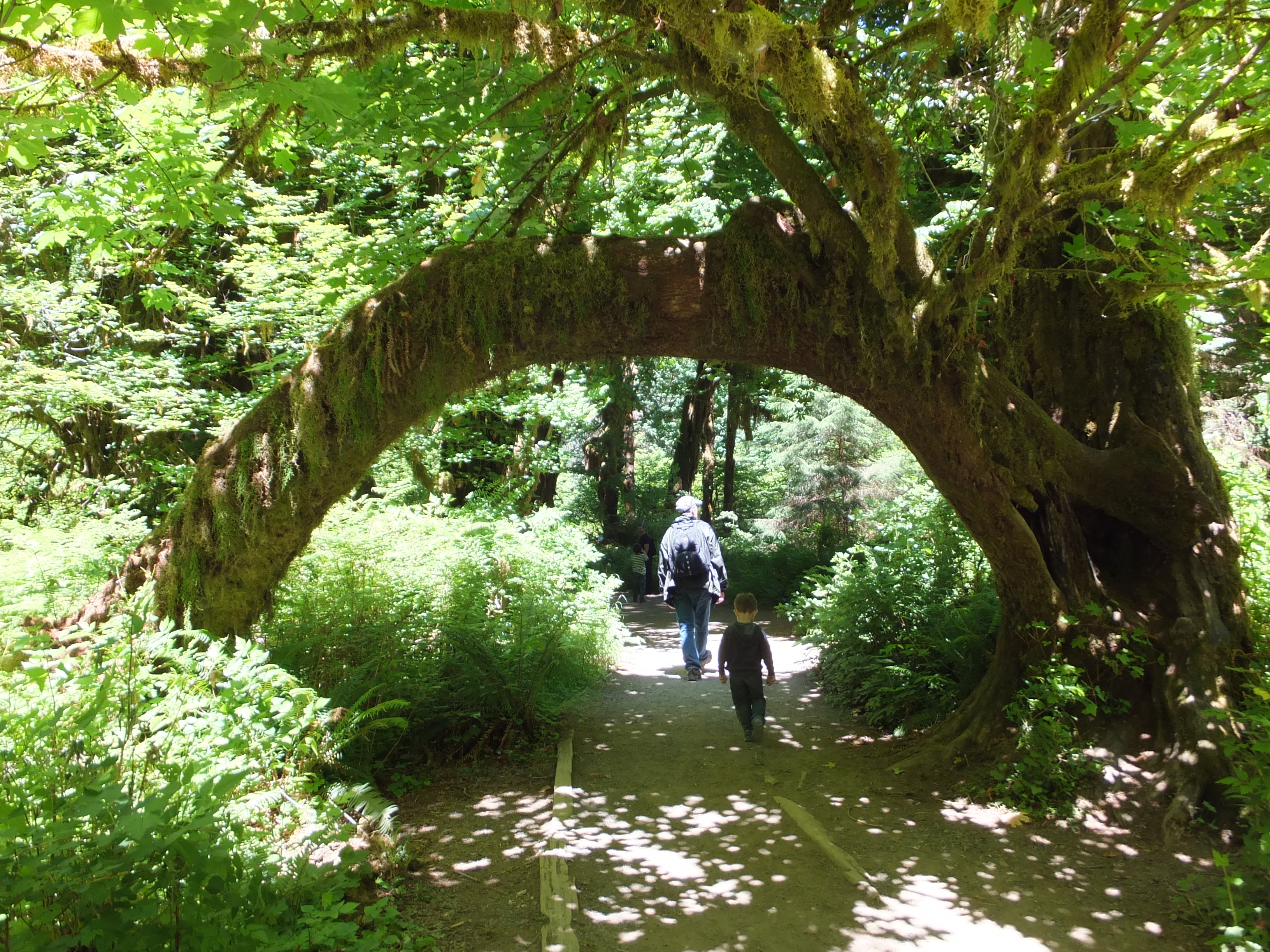 Other interesting elements of the Hoh Rainforest included nurse logs — a fallen tree that becomes fertilizer for new growth and results in a straight line of young trees with arched roots — and bridge trees, which are fallen trees that continue living and put down roots on both ends!