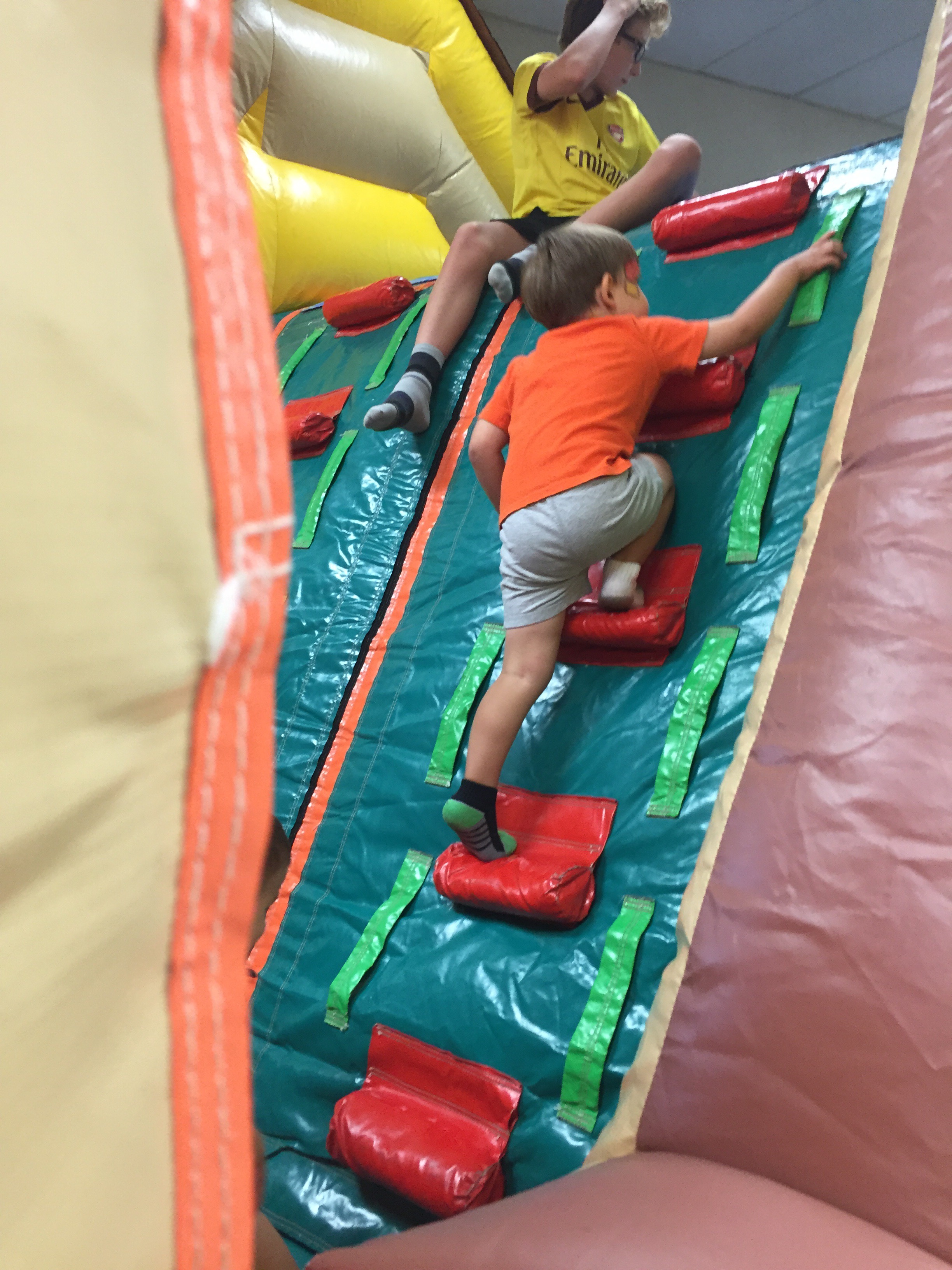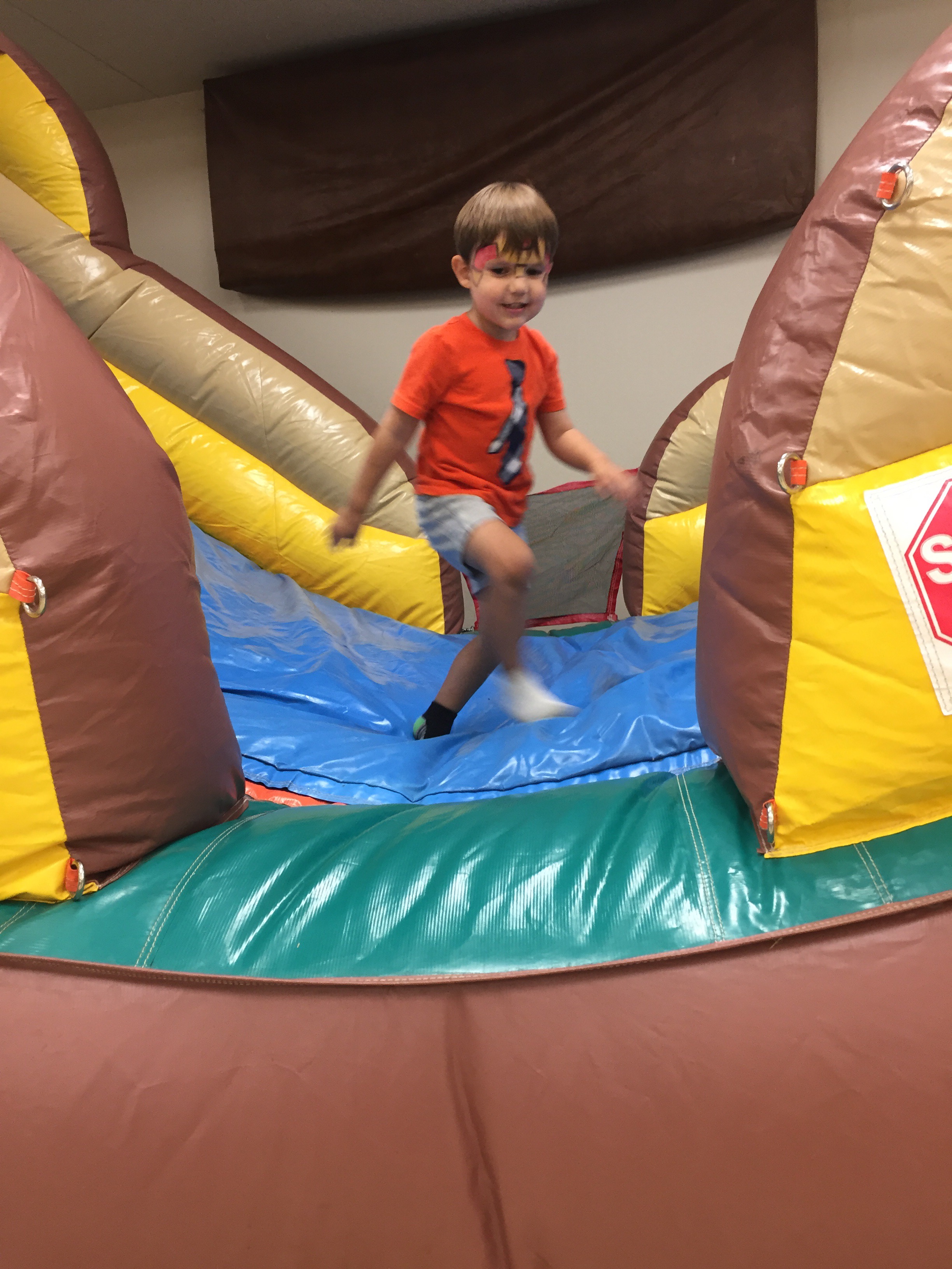 The next thing I knew, he had left the bouncy house and was sitting at the face-painting station calmly letting a girl he’s never spoken to before paint an Ironman mask on his face! When she was done, he hopped up and when dashing back into the bouncy house.