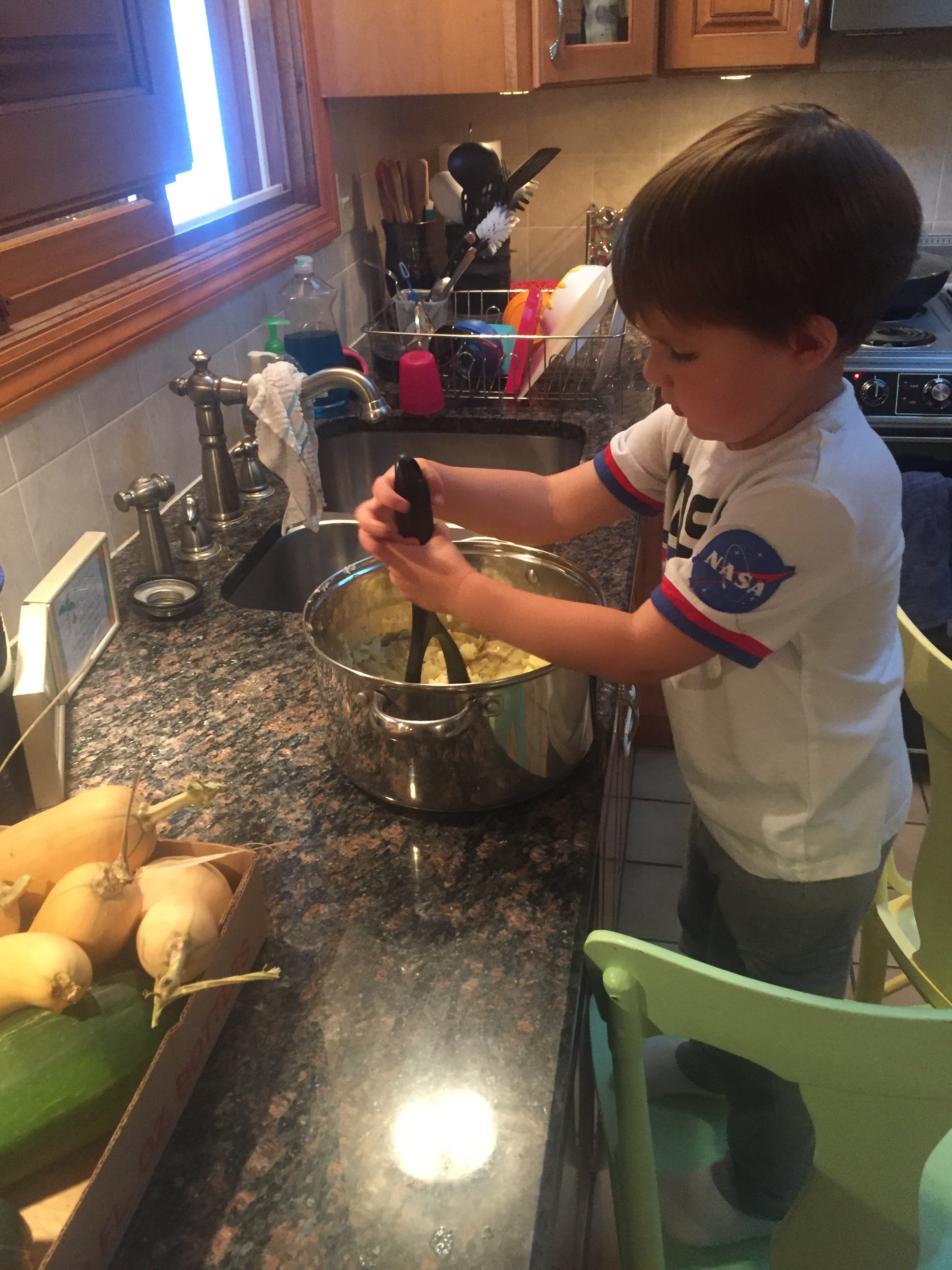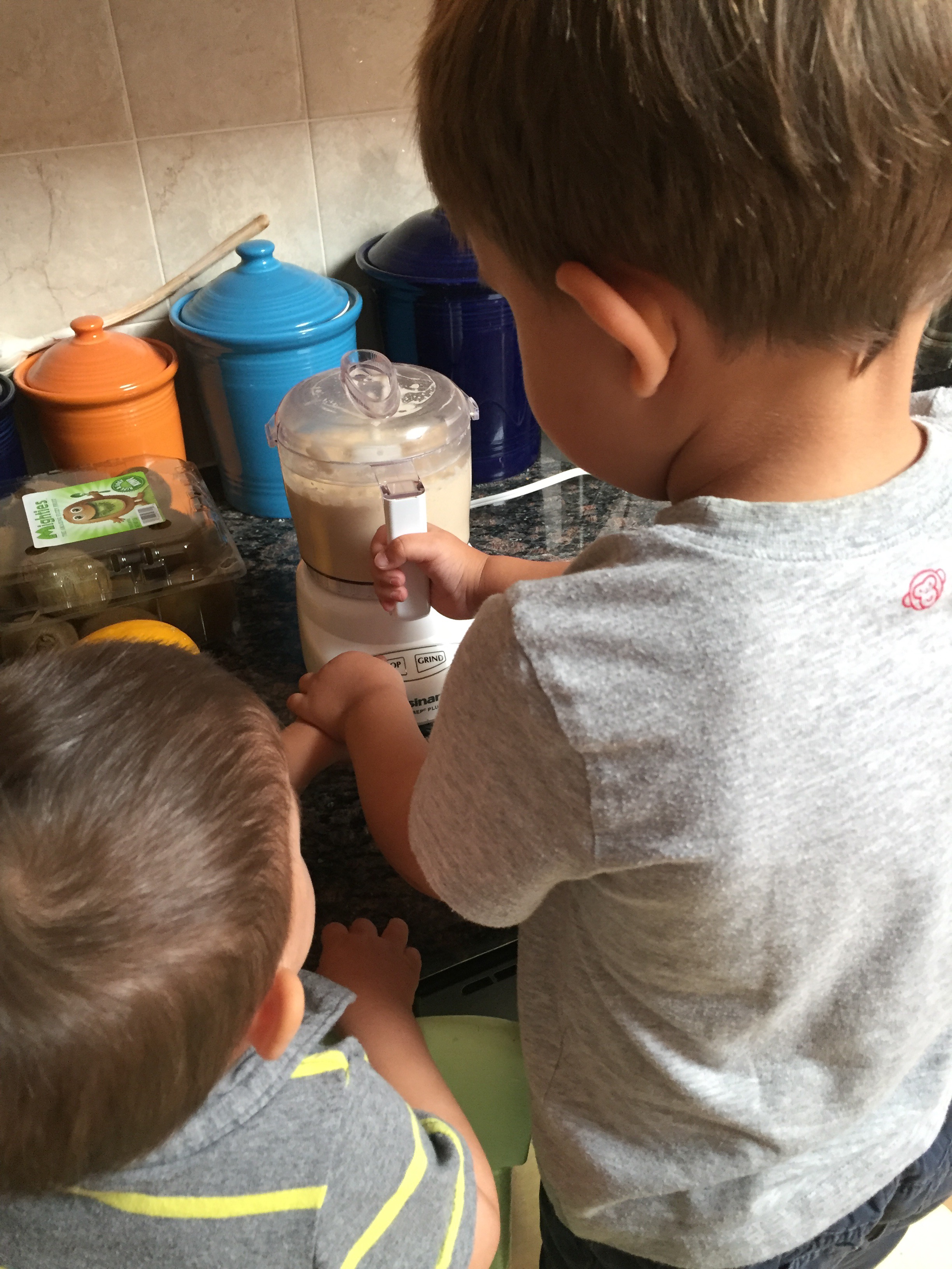 My son also smashed his first batch of potatoes this week, harvested a few more strawberries off his of strawberry plant, and earlier this month, he showed his eighteen-month-old brother how to make hummus.